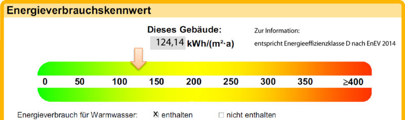 | Energieverbrauchskennwert | 124,14 kWh/(m²a) [inkl. Warmwasser] |